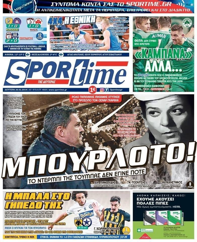 Δευτέρα 26 ΦΕΒΡΟΥΑΡΙΟΥ 2018