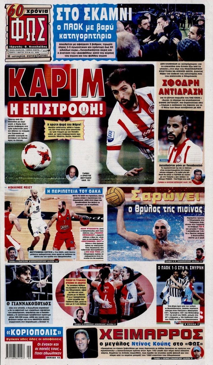 Πέμπτη 01 ΜΑΡΤΙΟΥ 2018