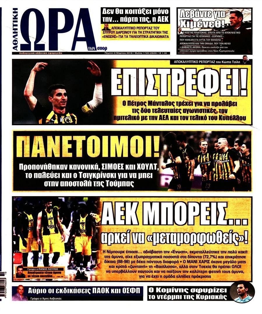 Πέμπτη 08 ΜΑΡΤΙΟΥ 2018