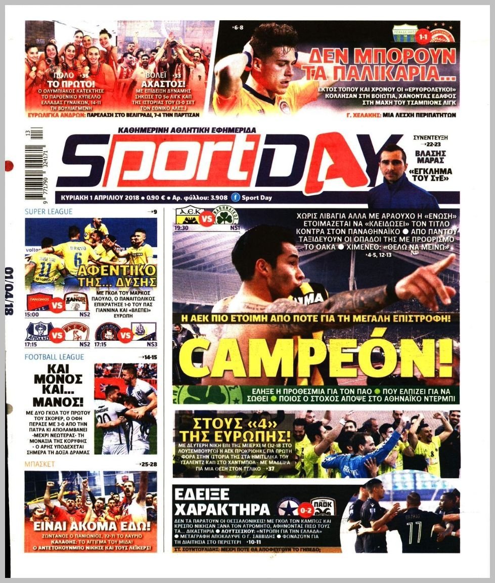Κυριακή 01 ΑΠΡΙΛΙΟΥ 2018