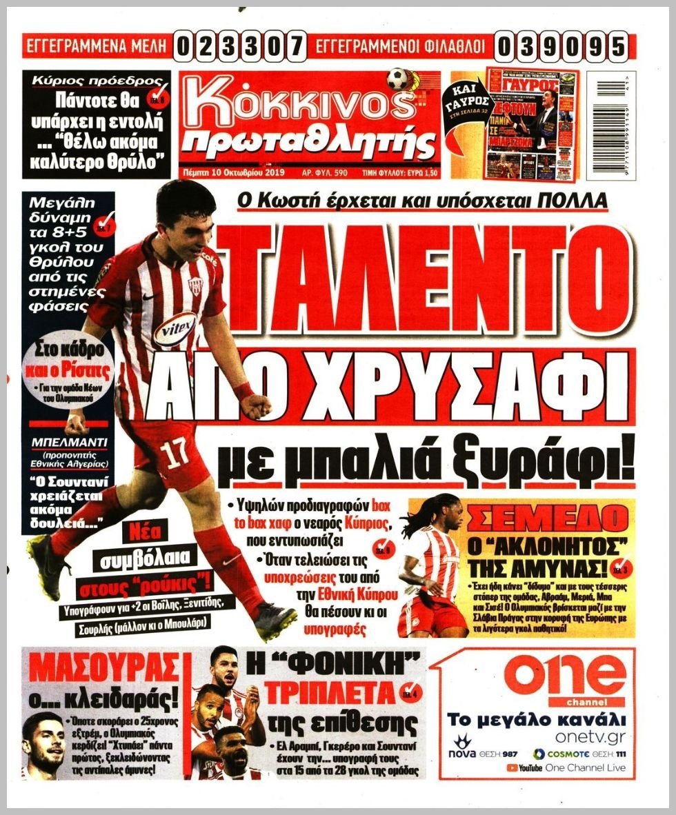 Πέμπτη 10 ΟΚΤΩΒΡΙΟΥ 2019