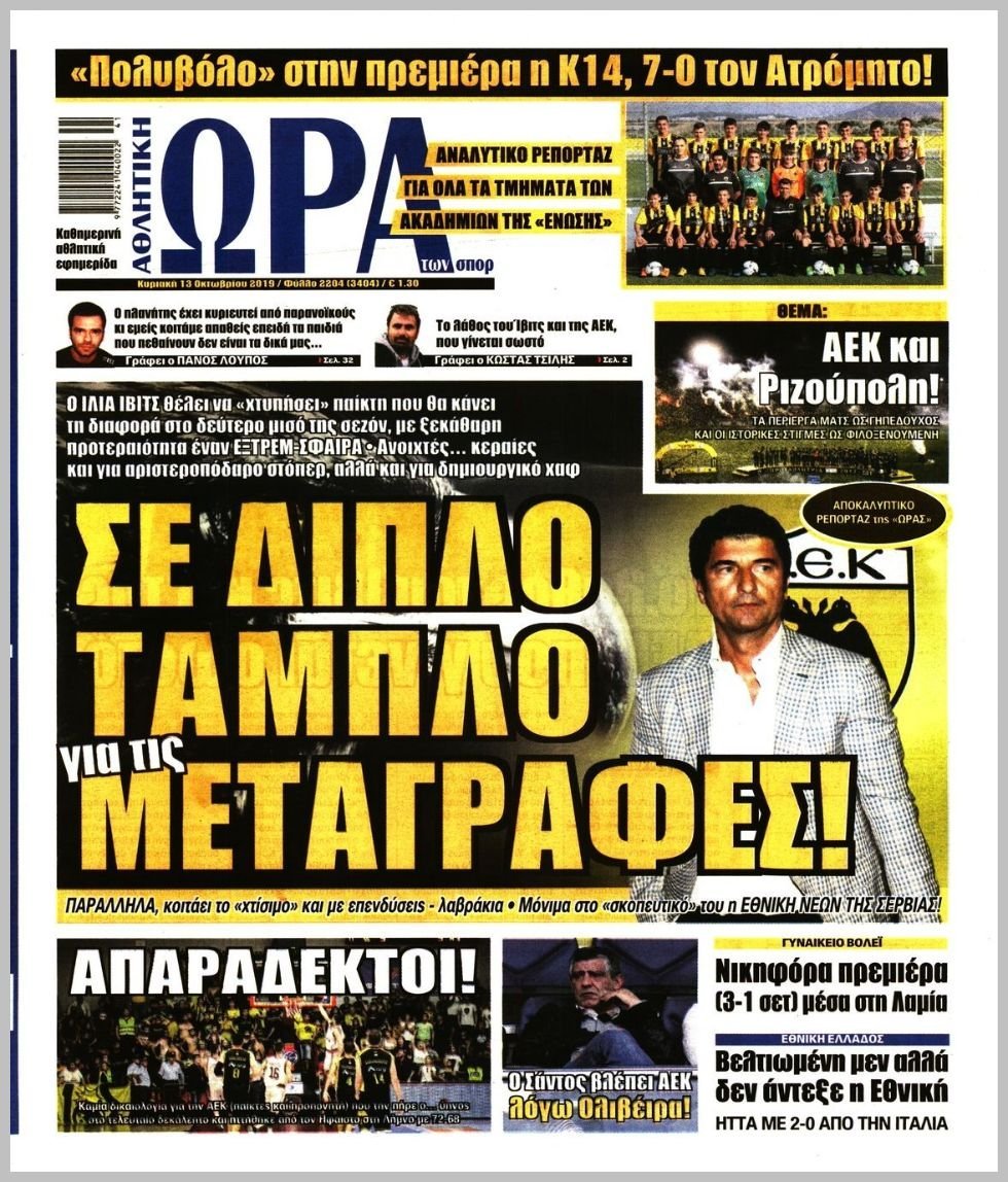 Κυριακή 13 ΟΚΤΩΒΡΙΟΥ 2019