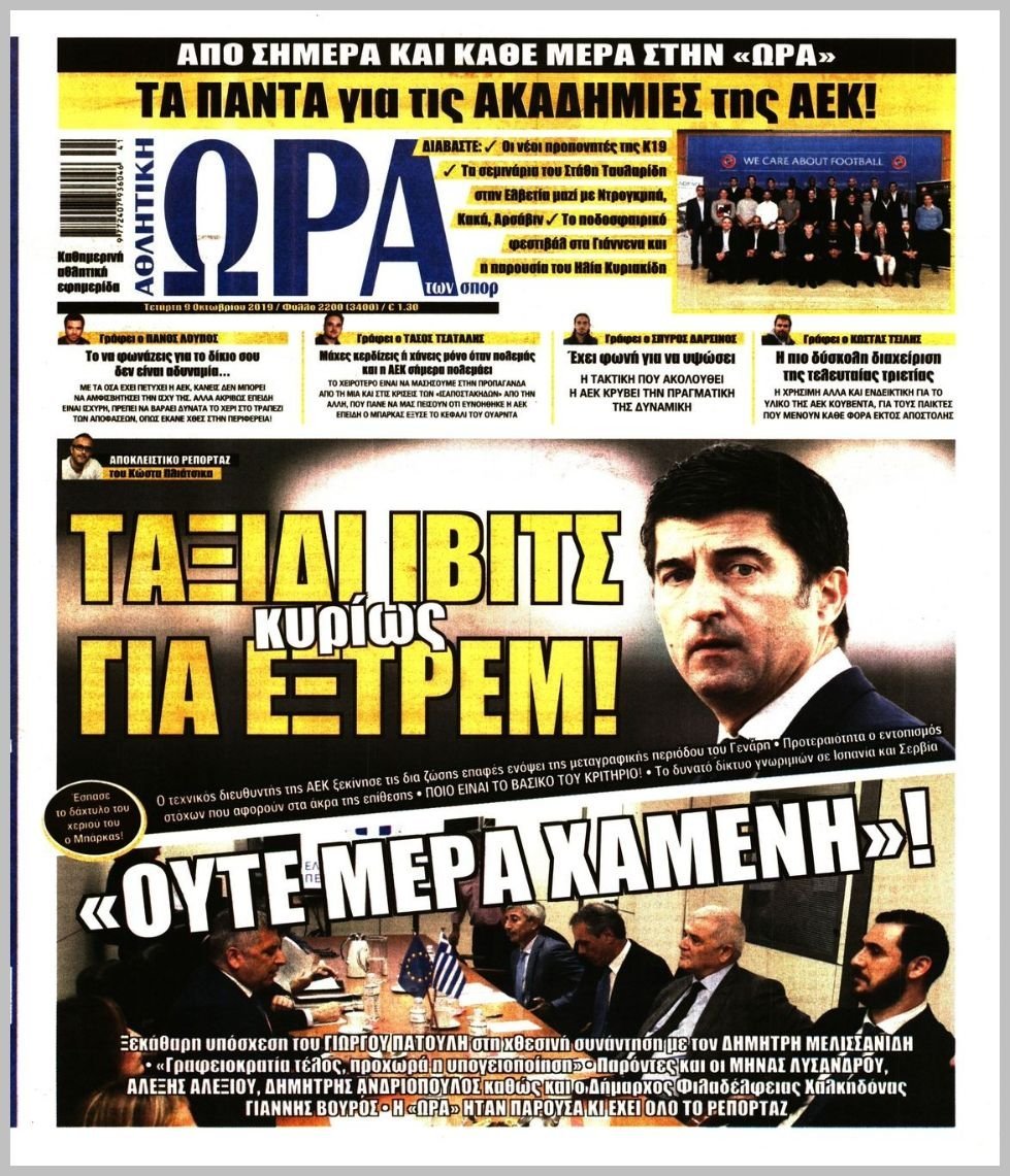 Τετάρτη 09 ΟΚΤΩΒΡΙΟΥ 2019
