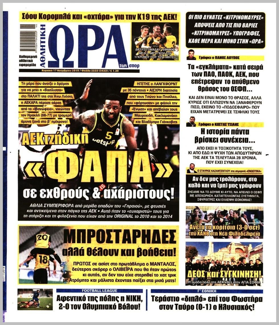 Κυριακή 17 ΝΟΕΜΒΡΙΟΥ 2019