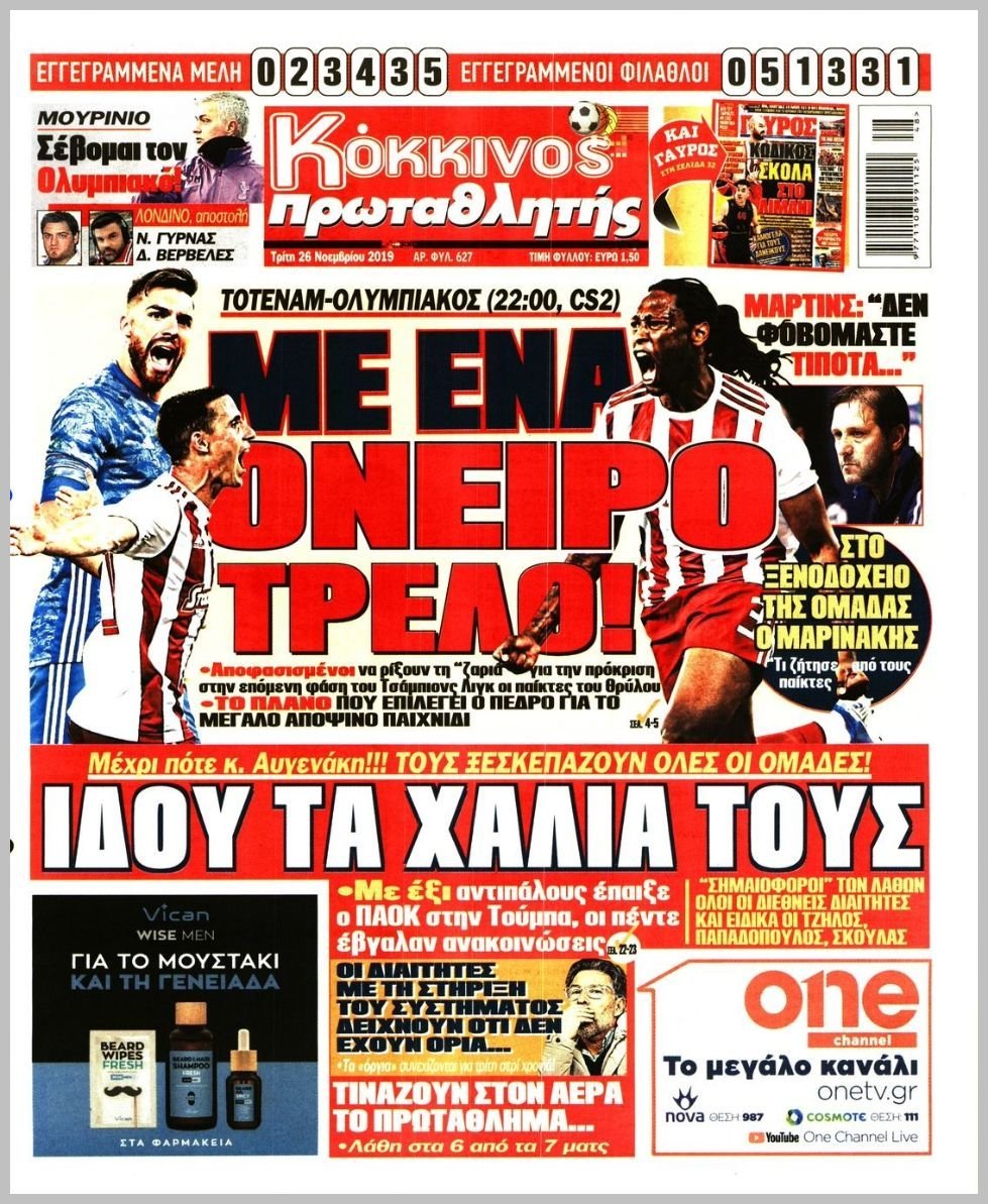 Τρίτη 26 ΝΟΕΜΒΡΙΟΥ 2019