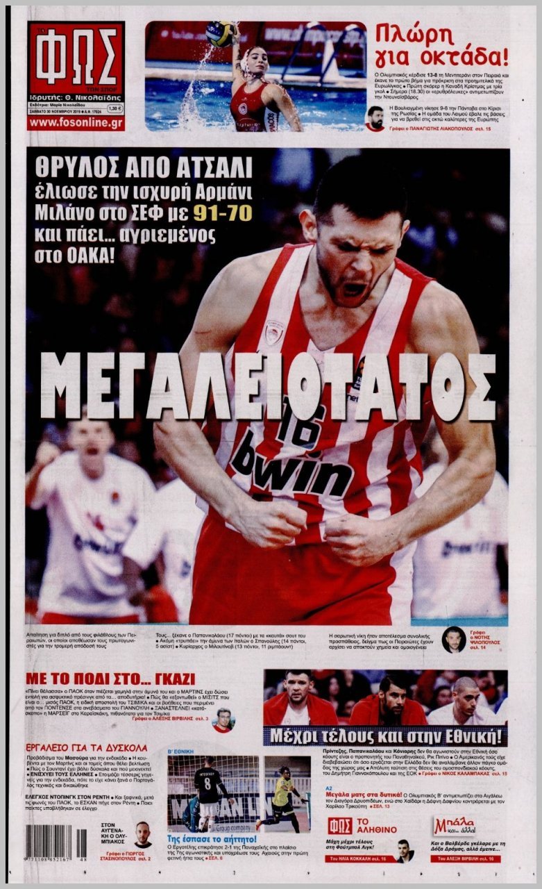 Σάββατο 30 ΝΟΕΜΒΡΙΟΥ 2019