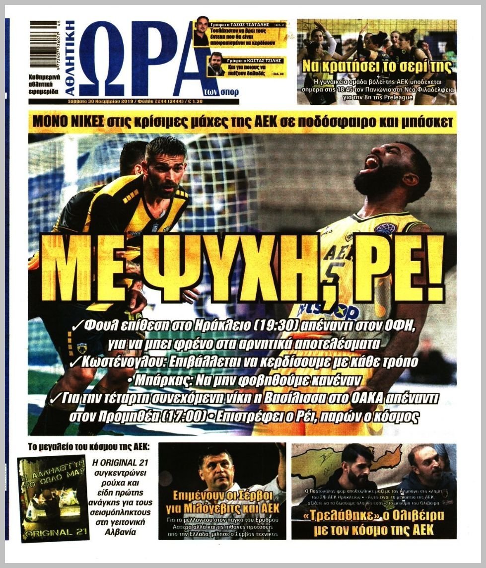 Σάββατο 30 ΝΟΕΜΒΡΙΟΥ 2019
