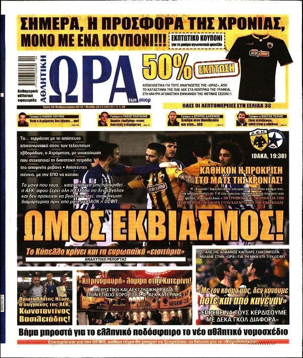 Τρίτη 26 ΦΕΒΡΟΥΑΡΙΟΥ 2019