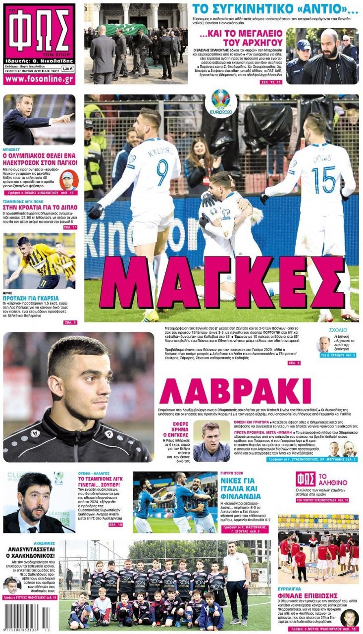 Τετάρτη 27 ΜΑΡΤΙΟΥ 2019
