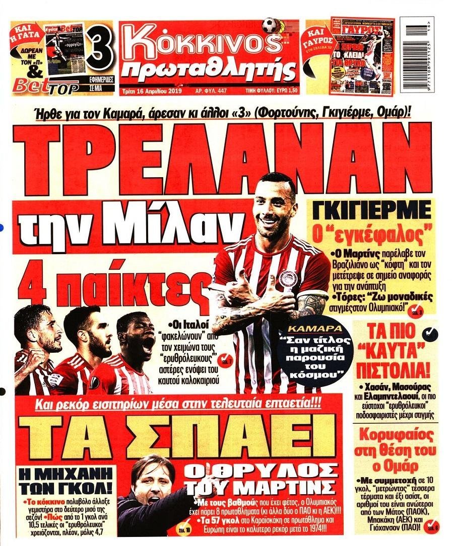 Τρίτη 16 ΑΠΡΙΛΙΟΥ 2019
