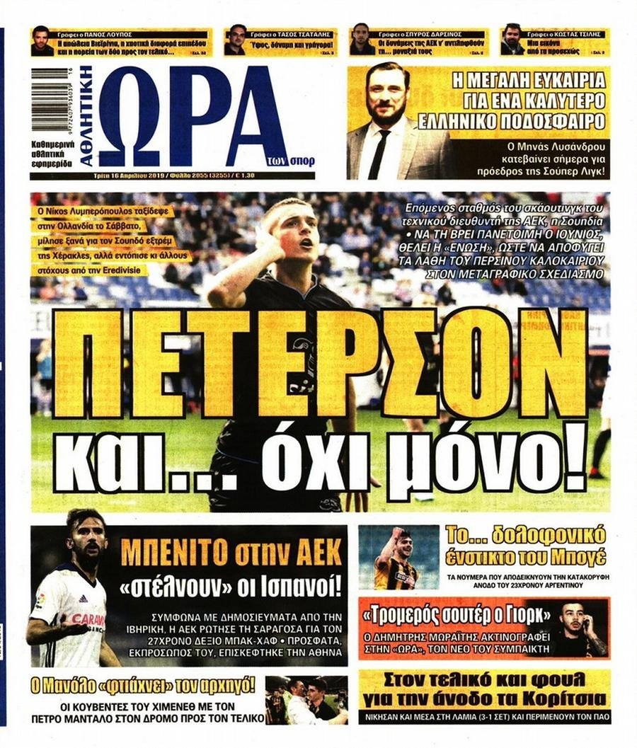 Τρίτη 16 ΑΠΡΙΛΙΟΥ 2019