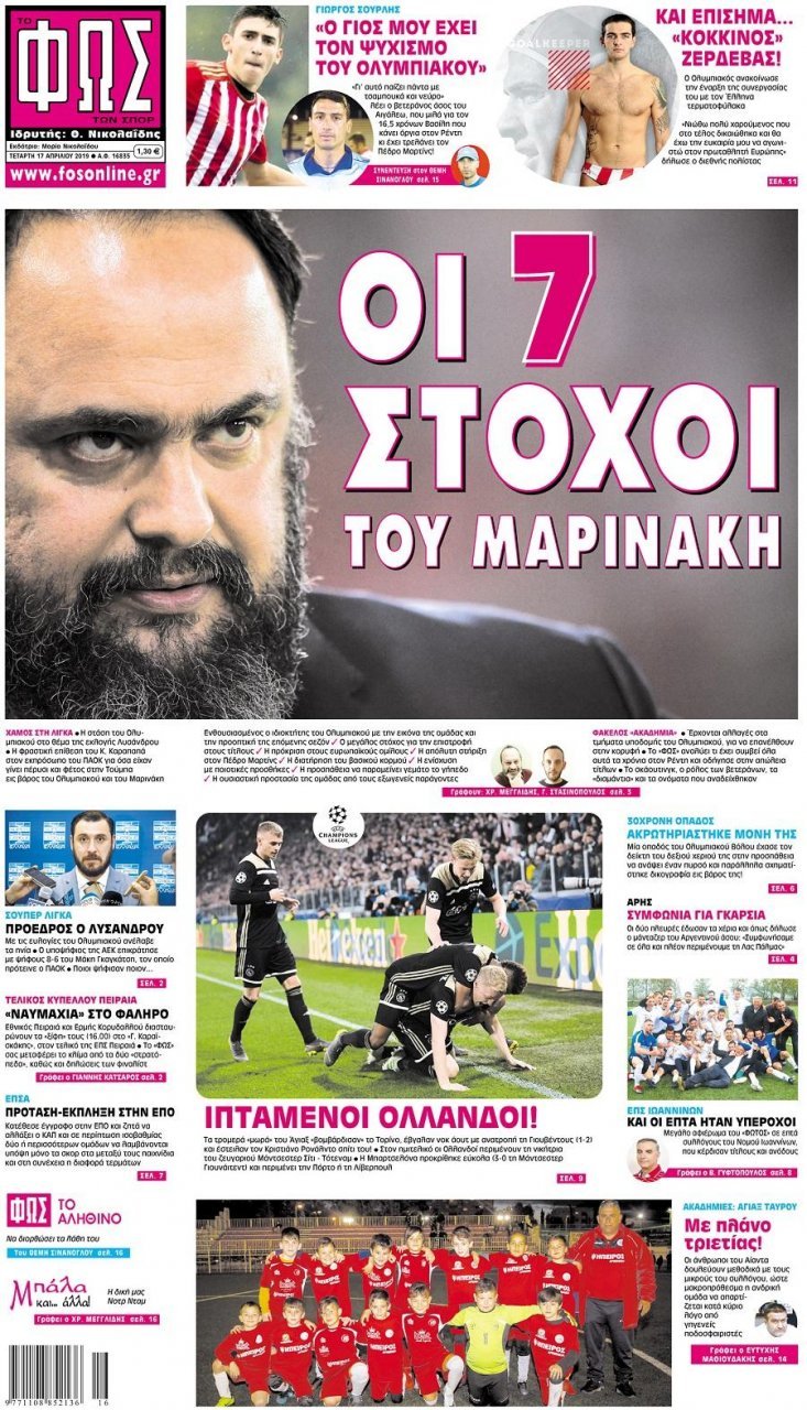 Τετάρτη 17 ΑΠΡΙΛΙΟΥ 2019
