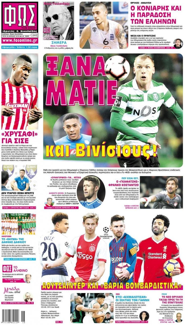 Τρίτη 30 ΑΠΡΙΛΙΟΥ 2019