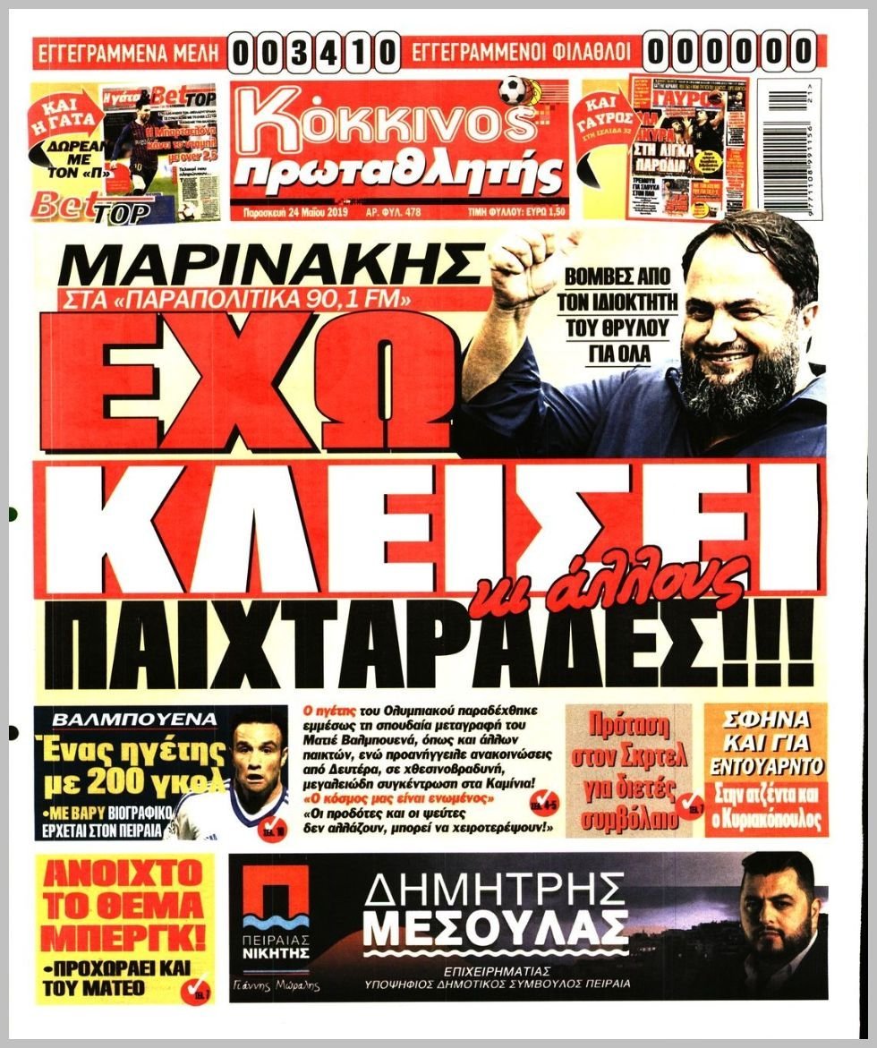 Παρασκευή 24 ΜΑΪΟΥ 2019