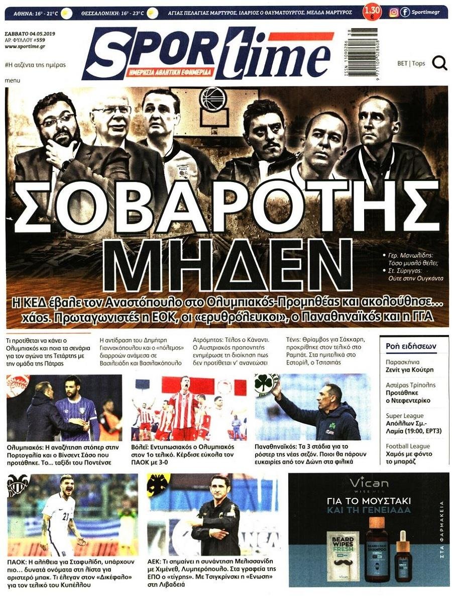 Σάββατο 04 ΜΑΪΟΥ 2019