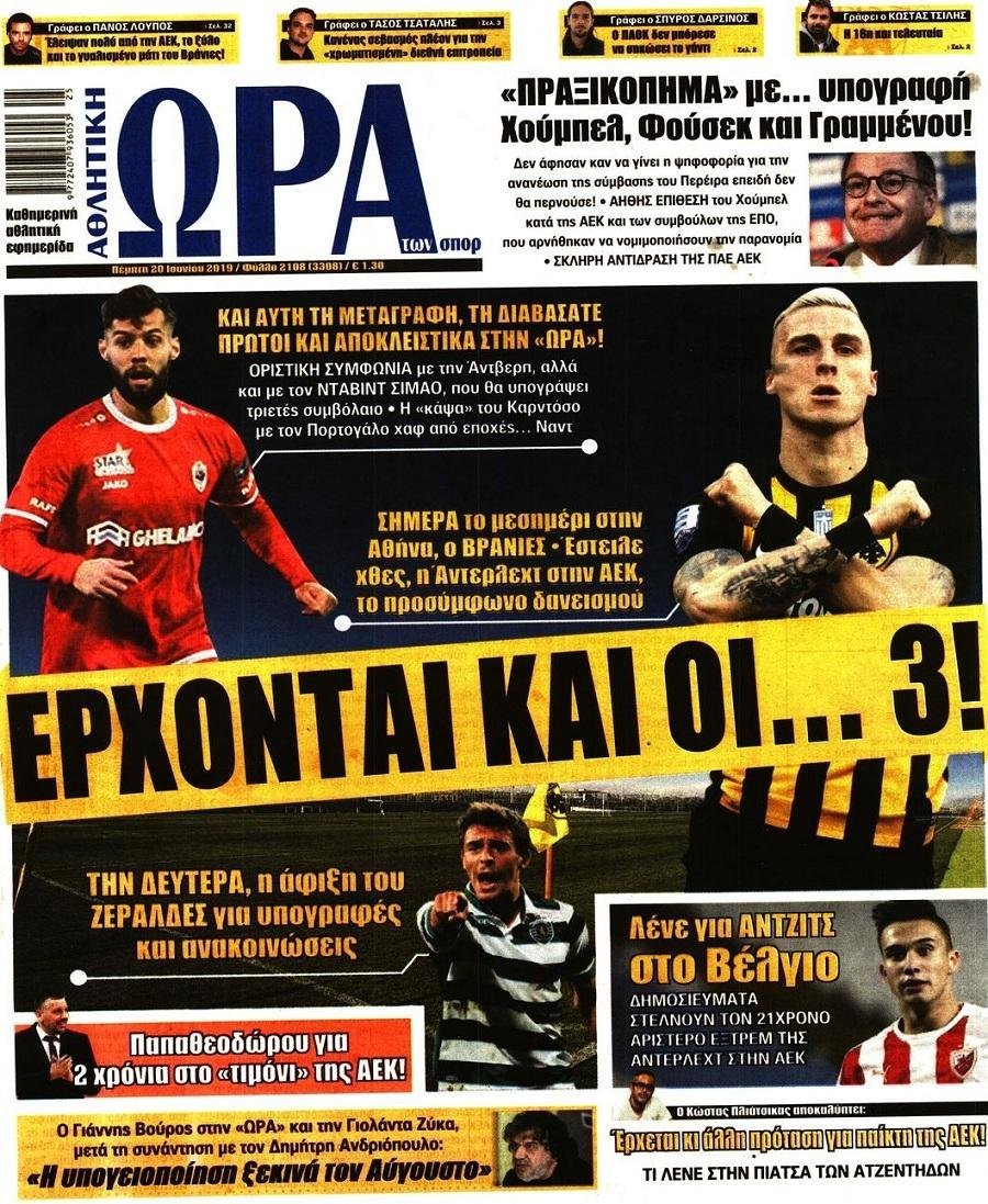 Πέμπτη 20 ΙΟΥΝΙΟΥ 2019