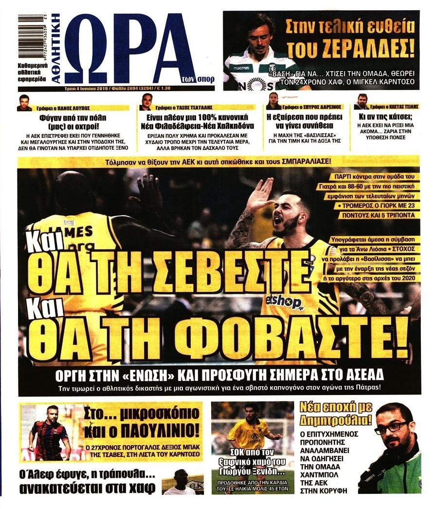 Τρίτη 04 ΙΟΥΝΙΟΥ 2019