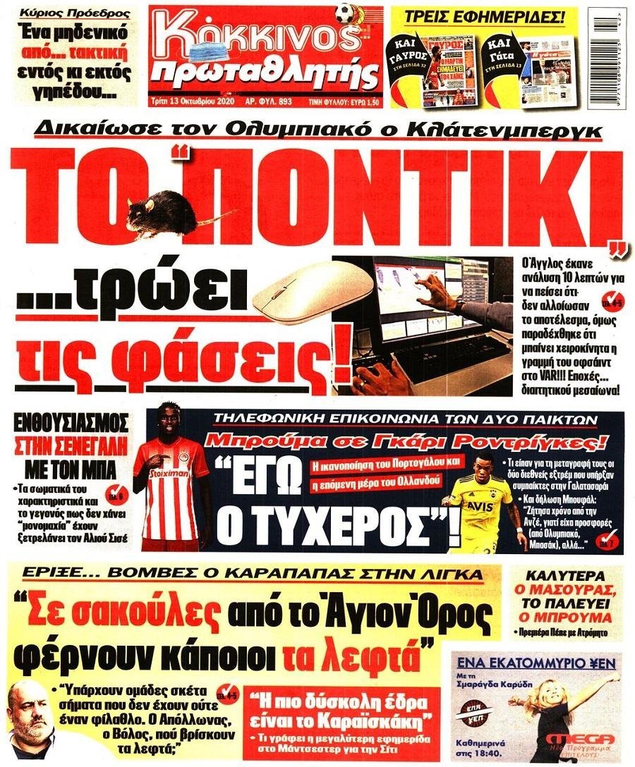 Τρίτη 13 ΟΚΤΩΒΡΙΟΥ 2020