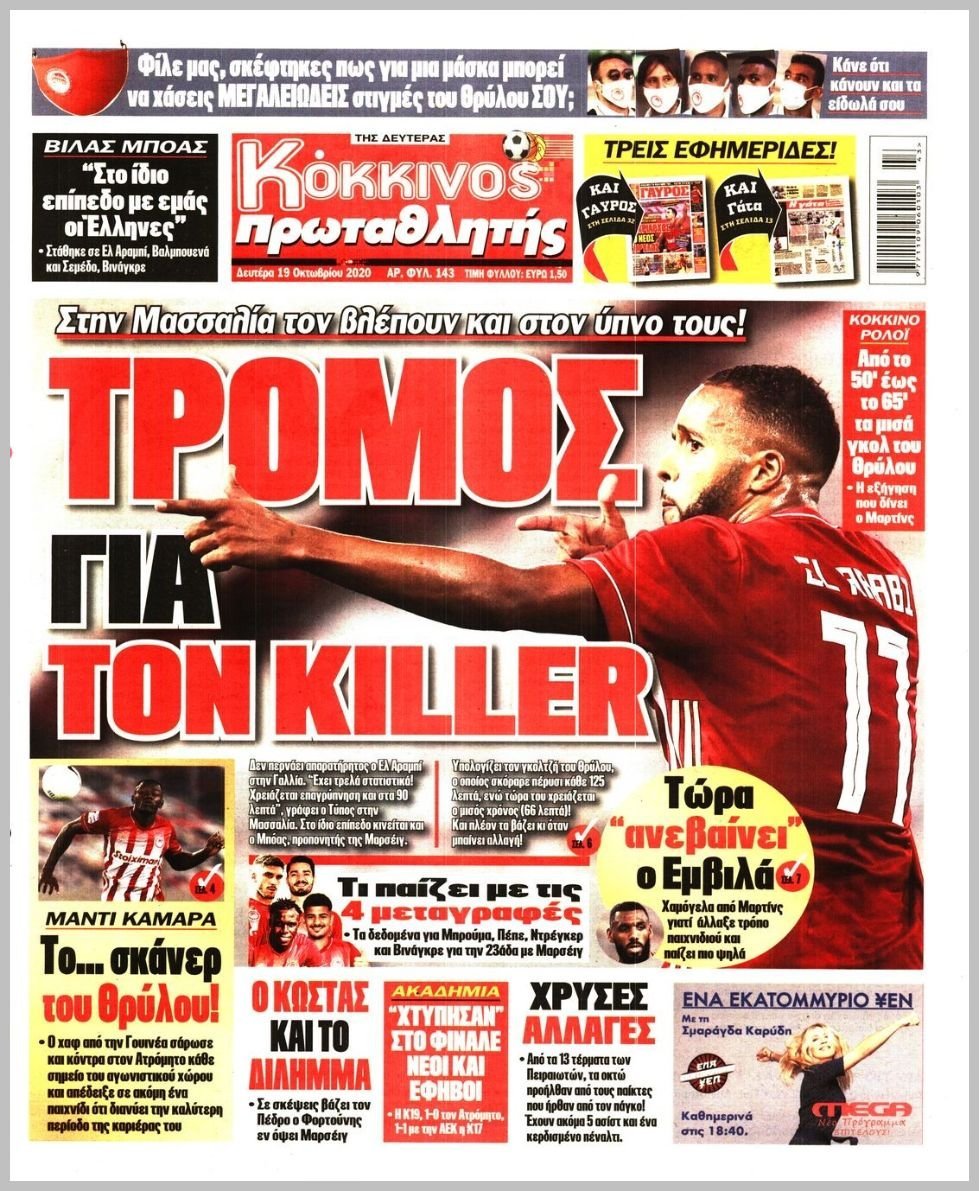 Δευτέρα 19 ΟΚΤΩΒΡΙΟΥ 2020