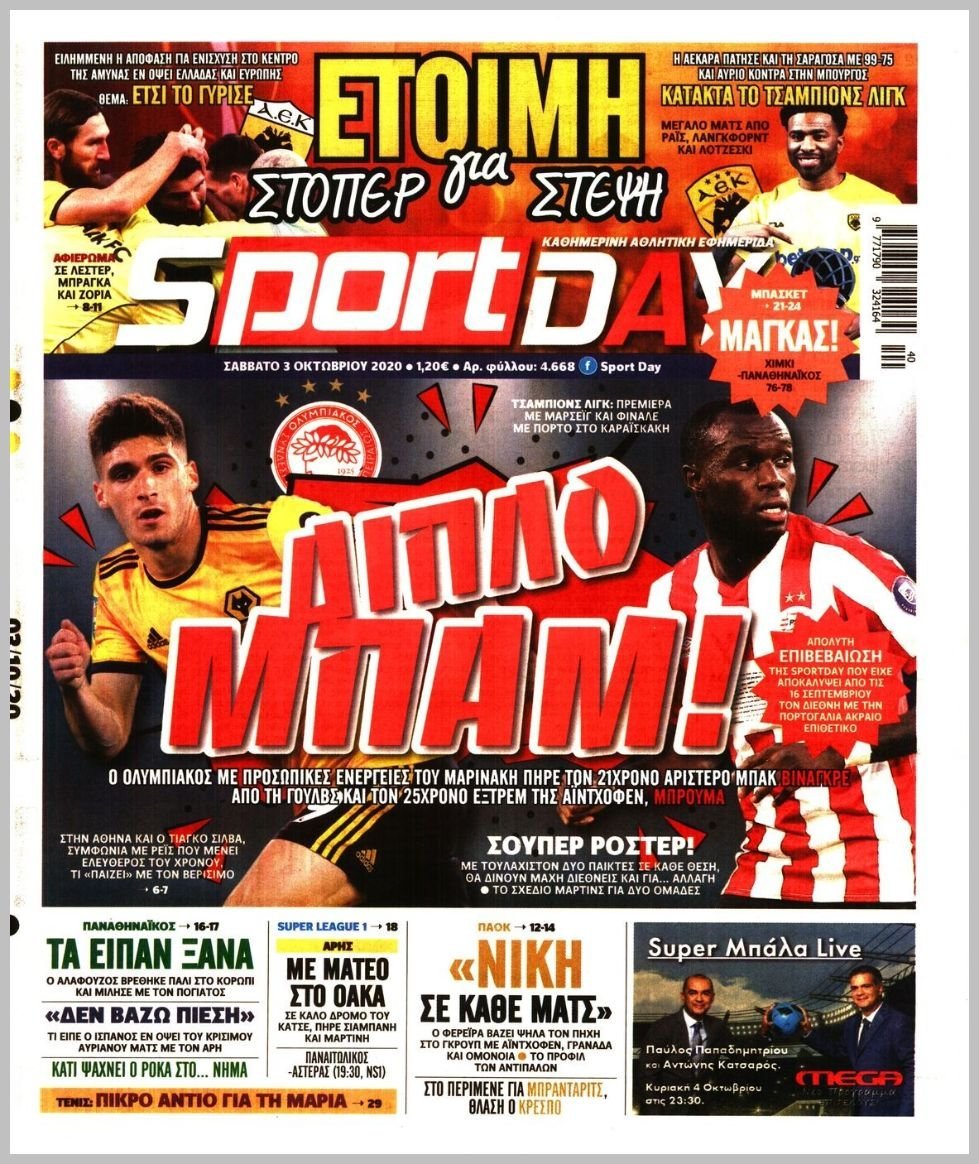 Σάββατο 03 ΟΚΤΩΒΡΙΟΥ 2020