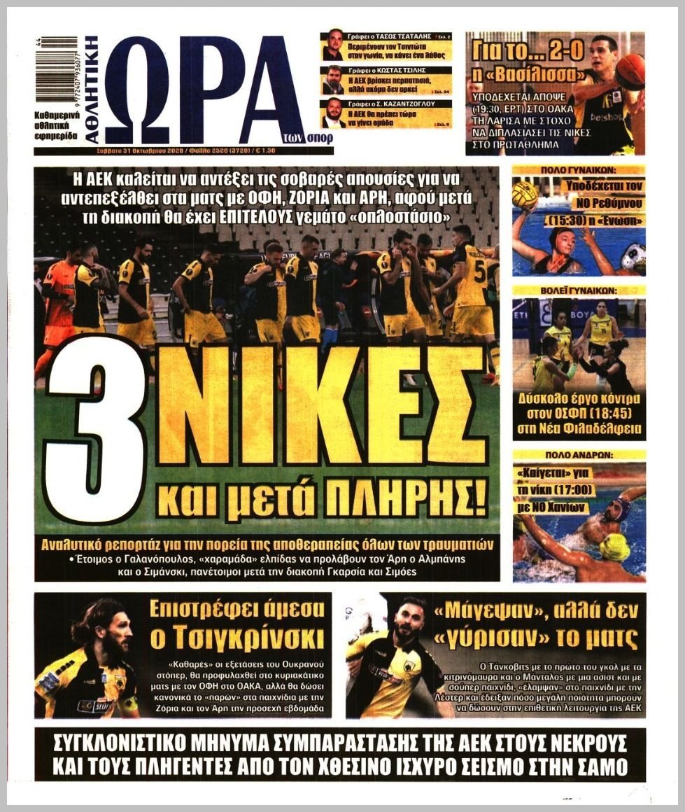 Σάββατο 31 ΟΚΤΩΒΡΙΟΥ 2020
