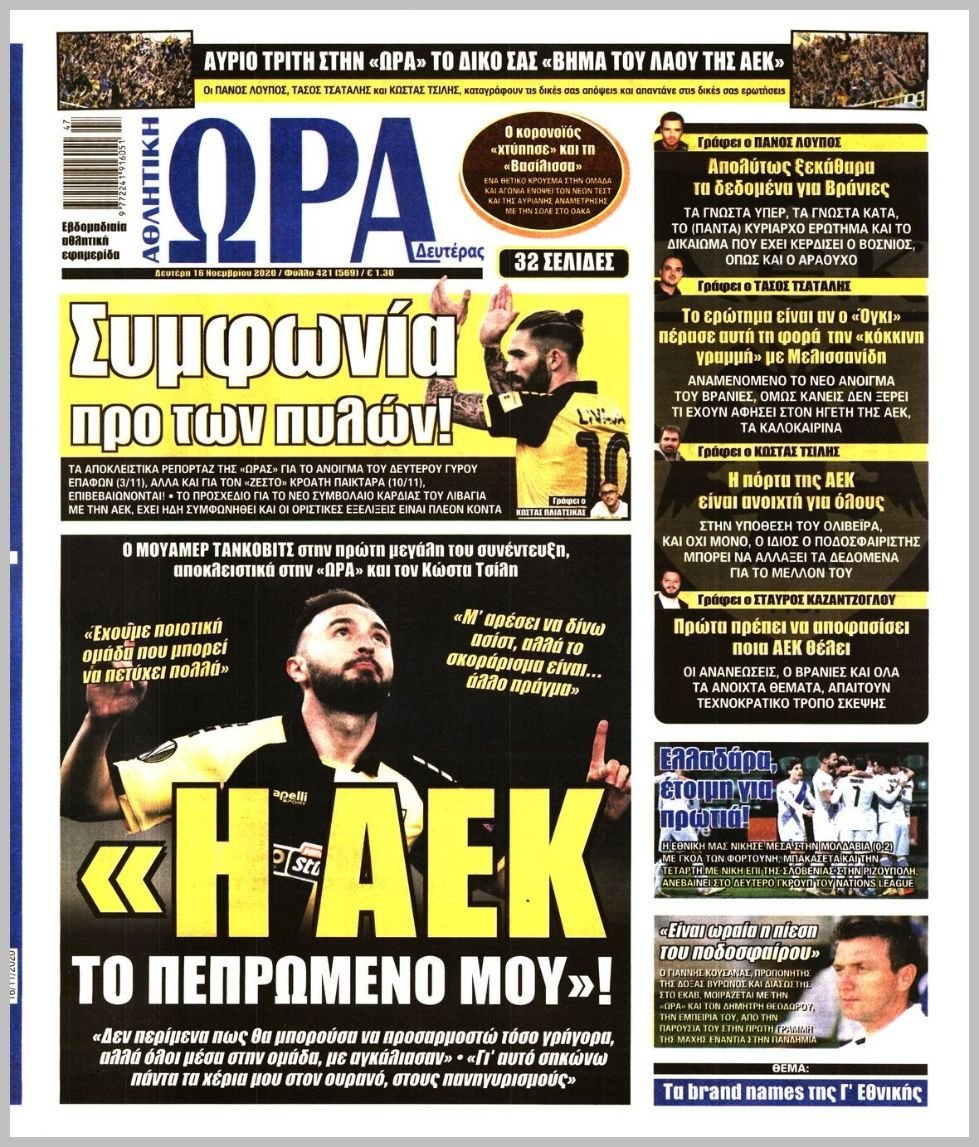 Δευτέρα 16 ΝΟΕΜΒΡΙΟΥ 2020
