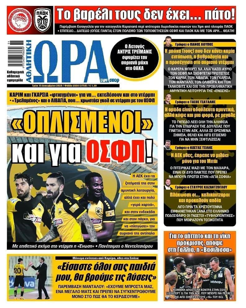 Τρίτη 15 ΔΕΚΕΜΒΡΙΟΥ 2020