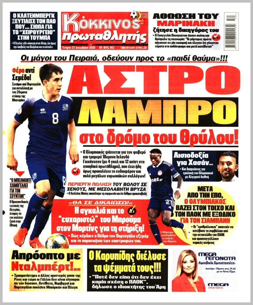 Τετάρτη 23 ΔΕΚΕΜΒΡΙΟΥ 2020