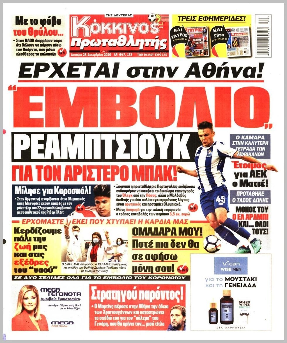Δευτέρα 28 ΔΕΚΕΜΒΡΙΟΥ 2020
