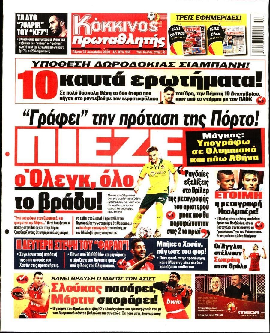 Πέμπτη 31 ΔΕΚΕΜΒΡΙΟΥ 2020
