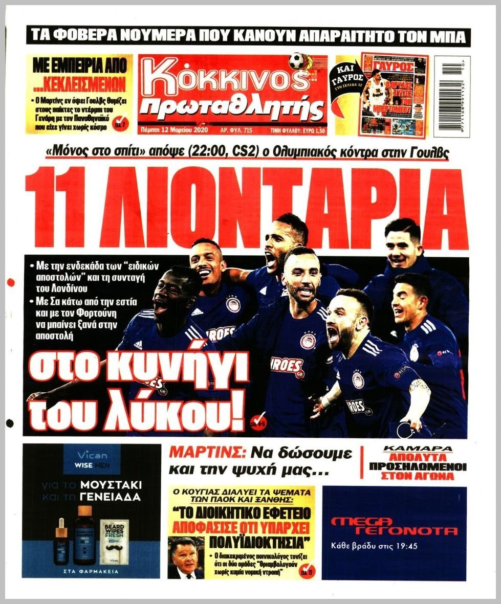 Πέμπτη 12 ΜΑΡΤΙΟΥ 2020
