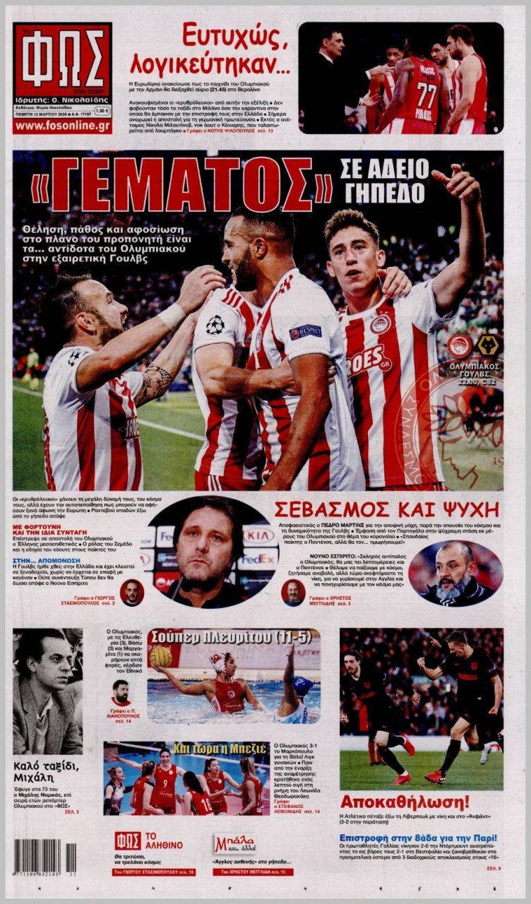 Πέμπτη 12 ΜΑΡΤΙΟΥ 2020