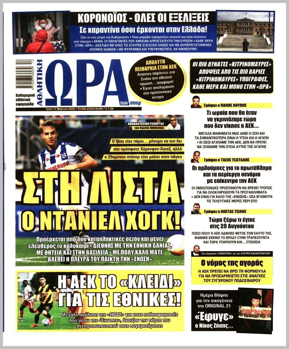 Τρίτη 17 ΜΑΡΤΙΟΥ 2020