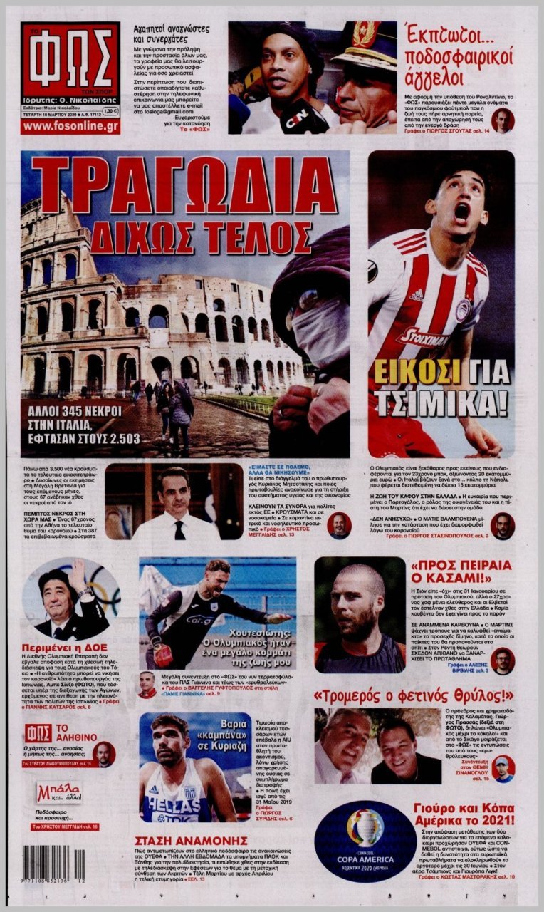 Τετάρτη 18 ΜΑΡΤΙΟΥ 2020