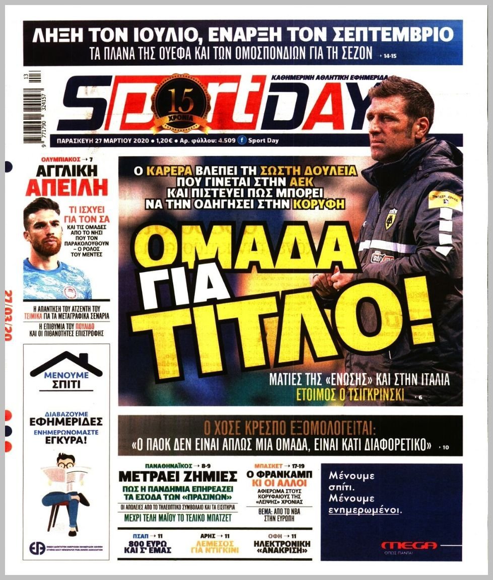 Παρασκευή 27 ΜΑΡΤΙΟΥ 2020