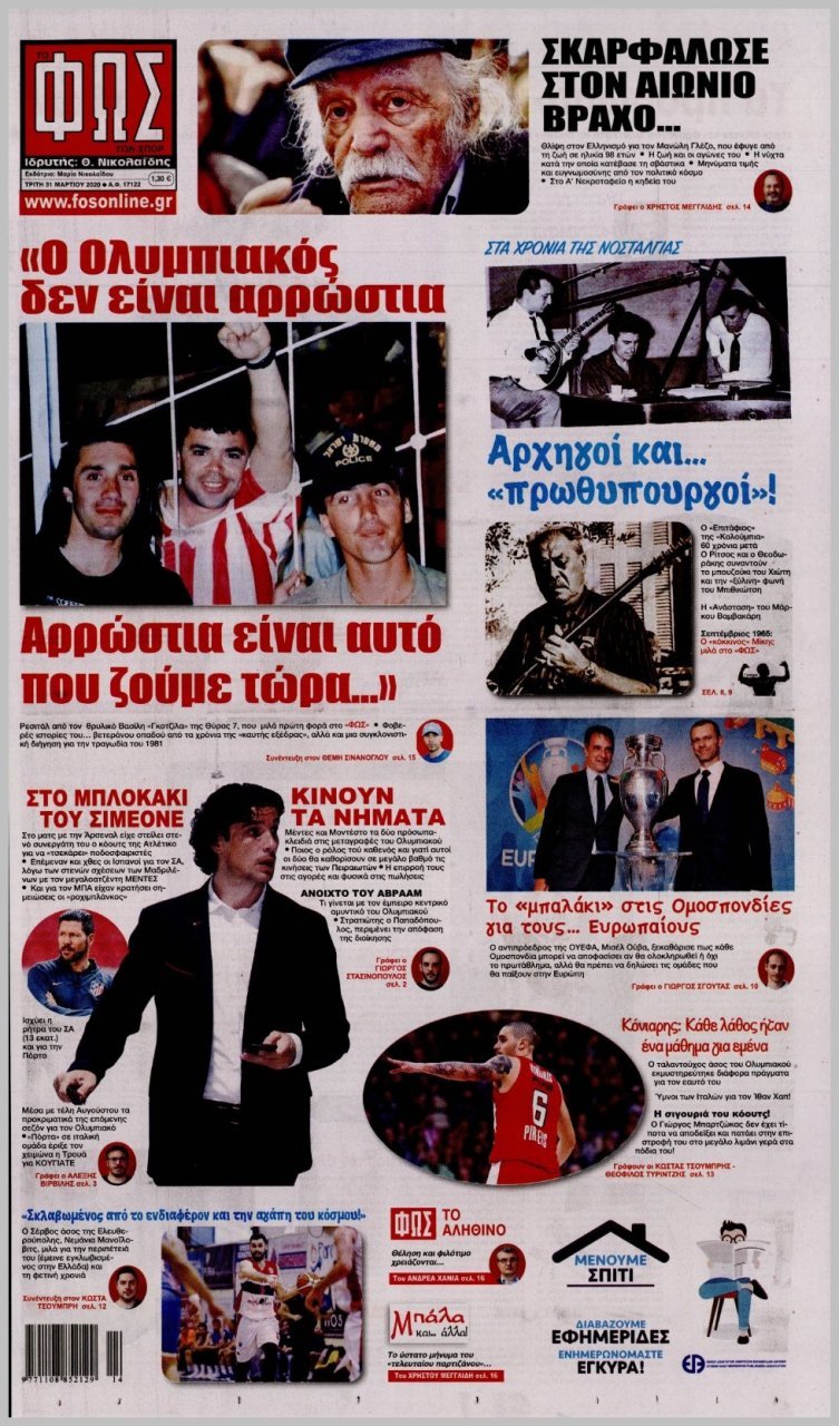 Τρίτη 31 ΜΑΡΤΙΟΥ 2020