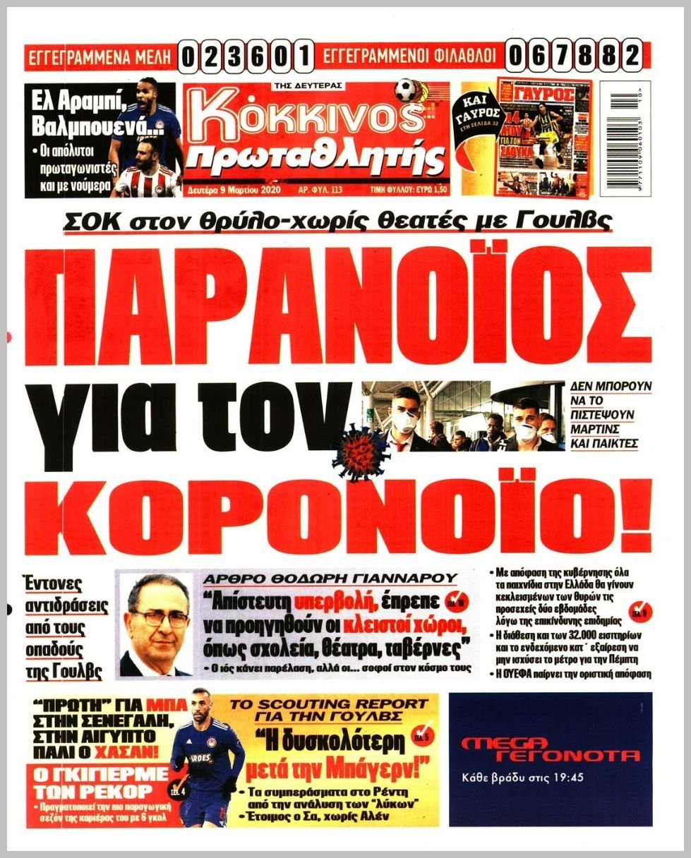 Δευτέρα 09 ΜΑΡΤΙΟΥ 2020