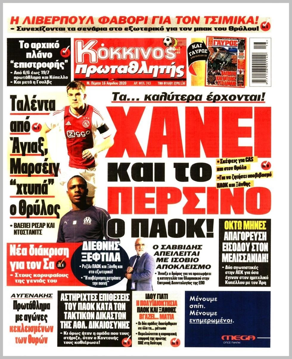 Πέμπτη 16 ΑΠΡΙΛΙΟΥ 2020