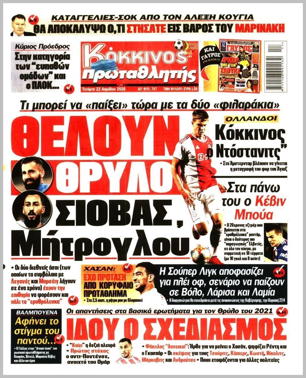 Τετάρτη 22 ΑΠΡΙΛΙΟΥ 2020