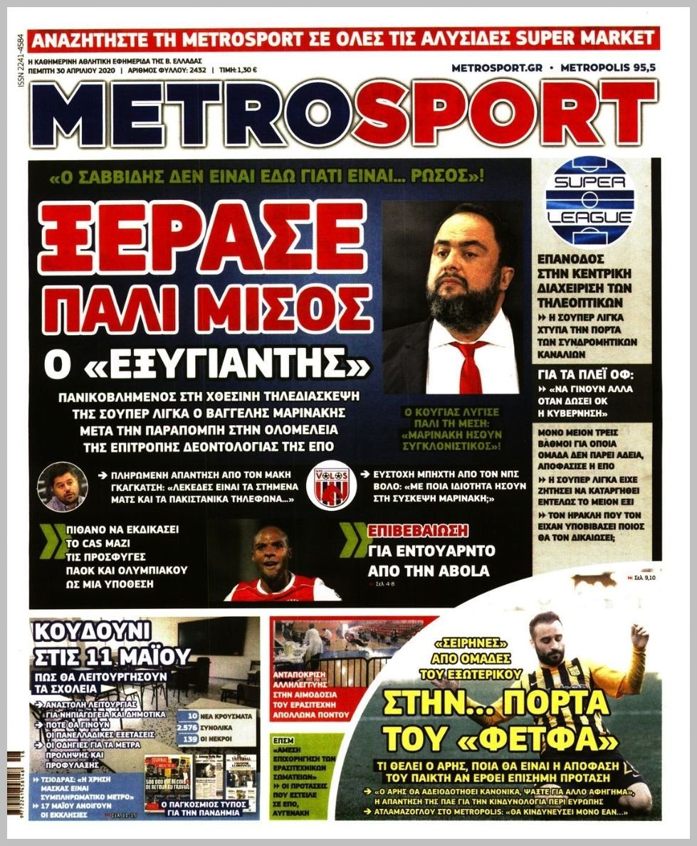 Πέμπτη 30 ΑΠΡΙΛΙΟΥ 2020