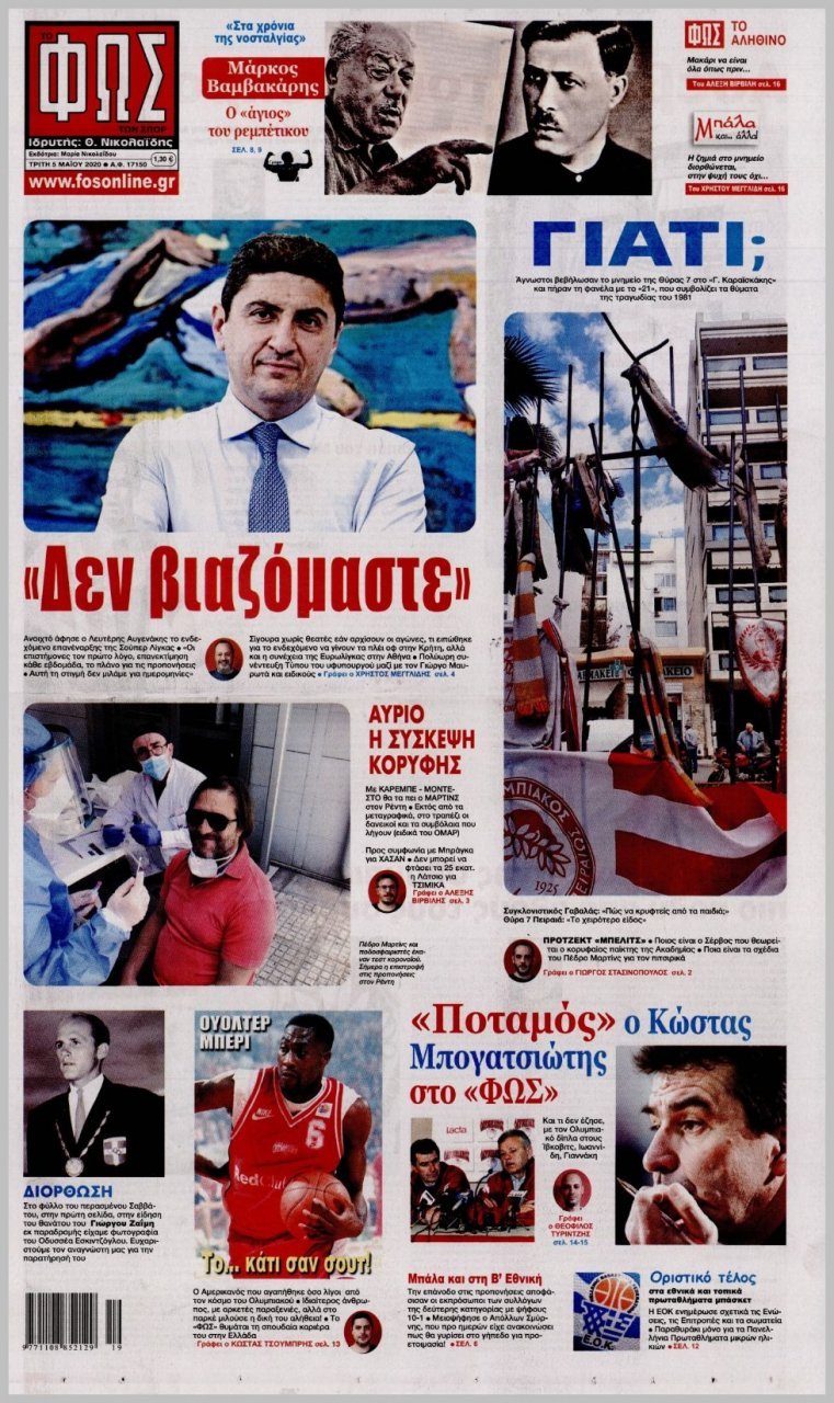 Τρίτη 05 ΜΑΪΟΥ 2020