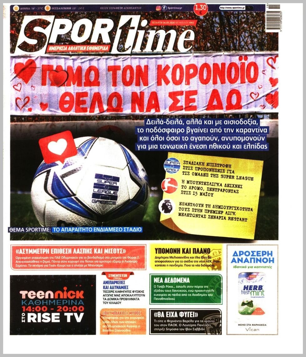 Τετάρτη 06 ΜΑΪΟΥ 2020