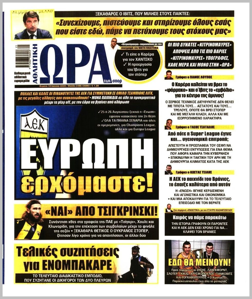 Πέμπτη 18 ΙΟΥΝΙΟΥ 2020