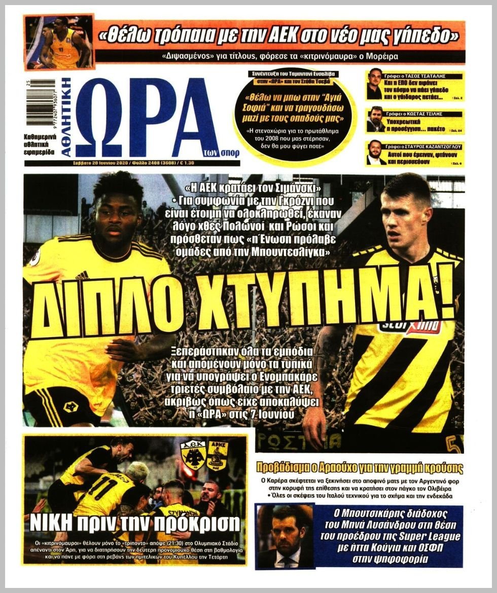 Σάββατο 20 ΙΟΥΝΙΟΥ 2020