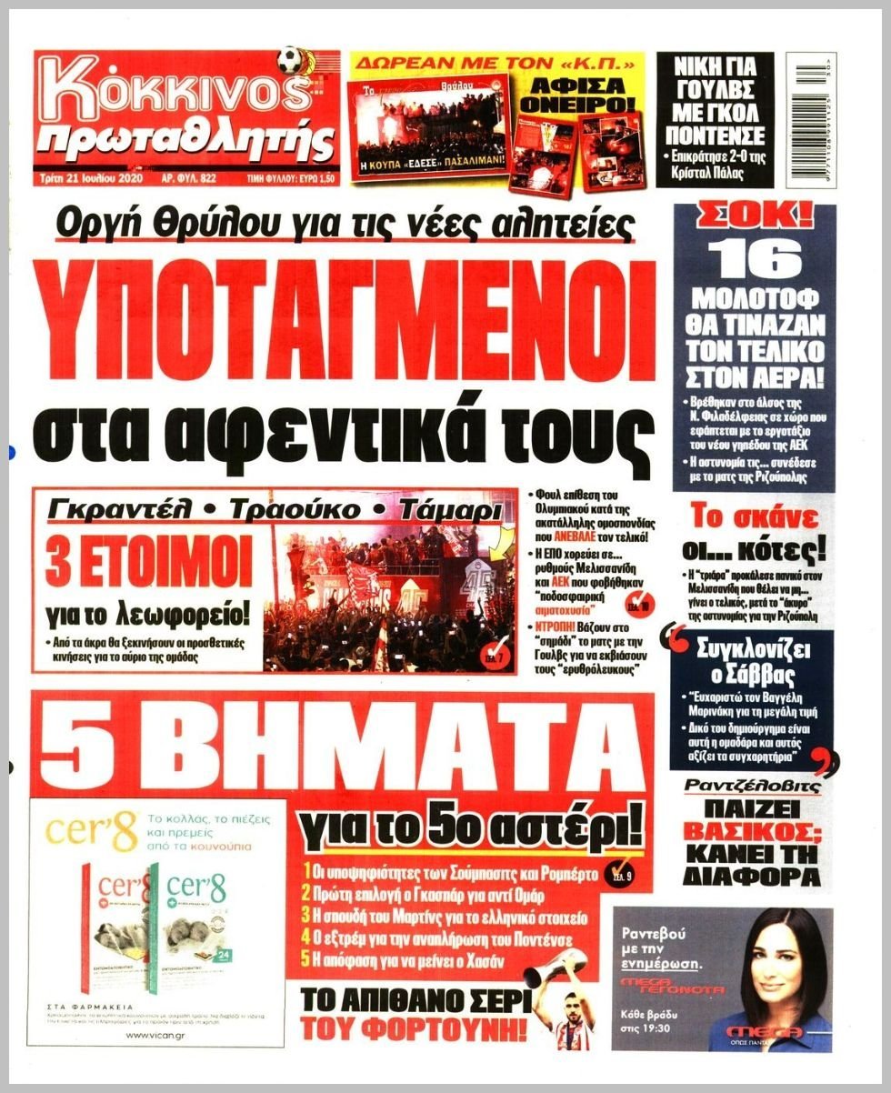 Τρίτη 21 ΙΟΥΛΙΟΥ 2020