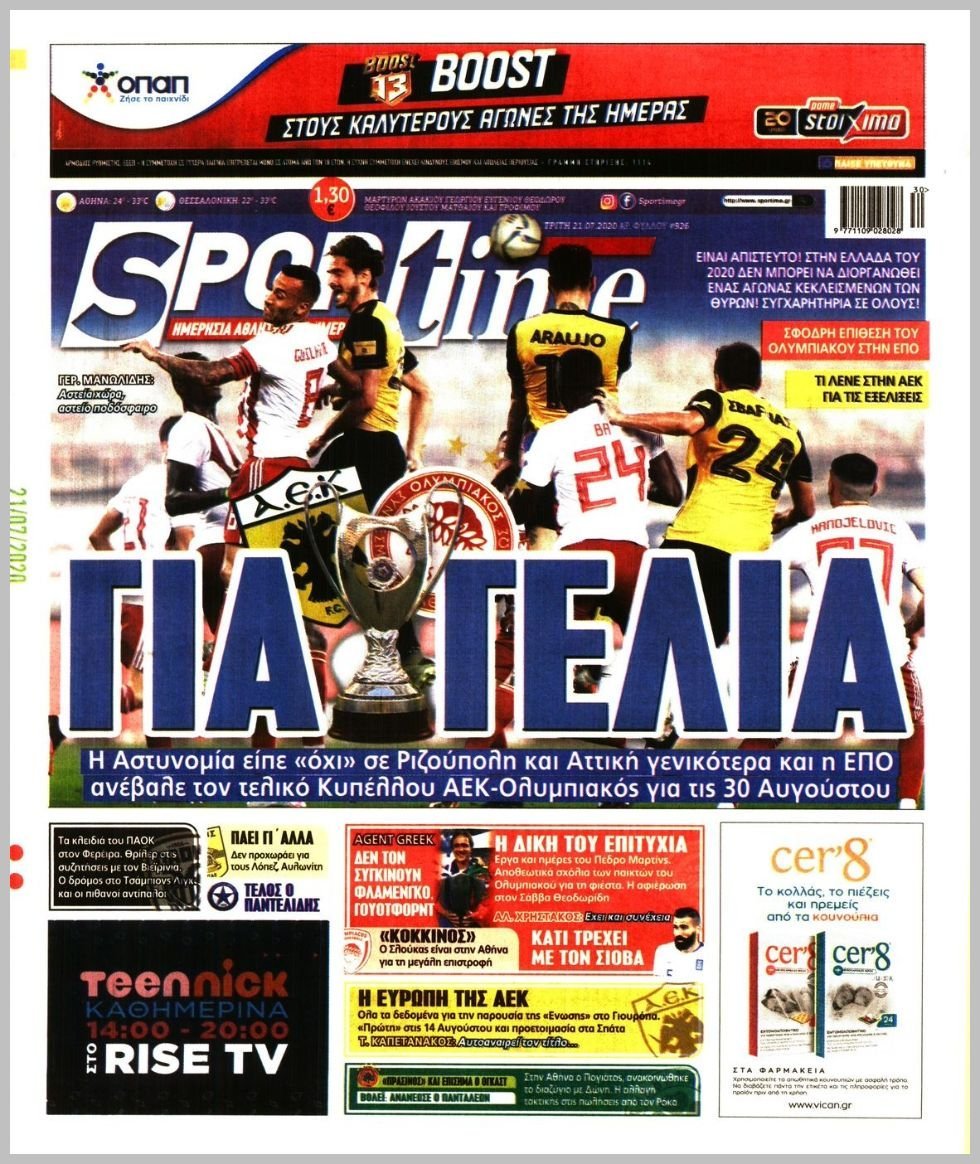 Τρίτη 21 ΙΟΥΛΙΟΥ 2020