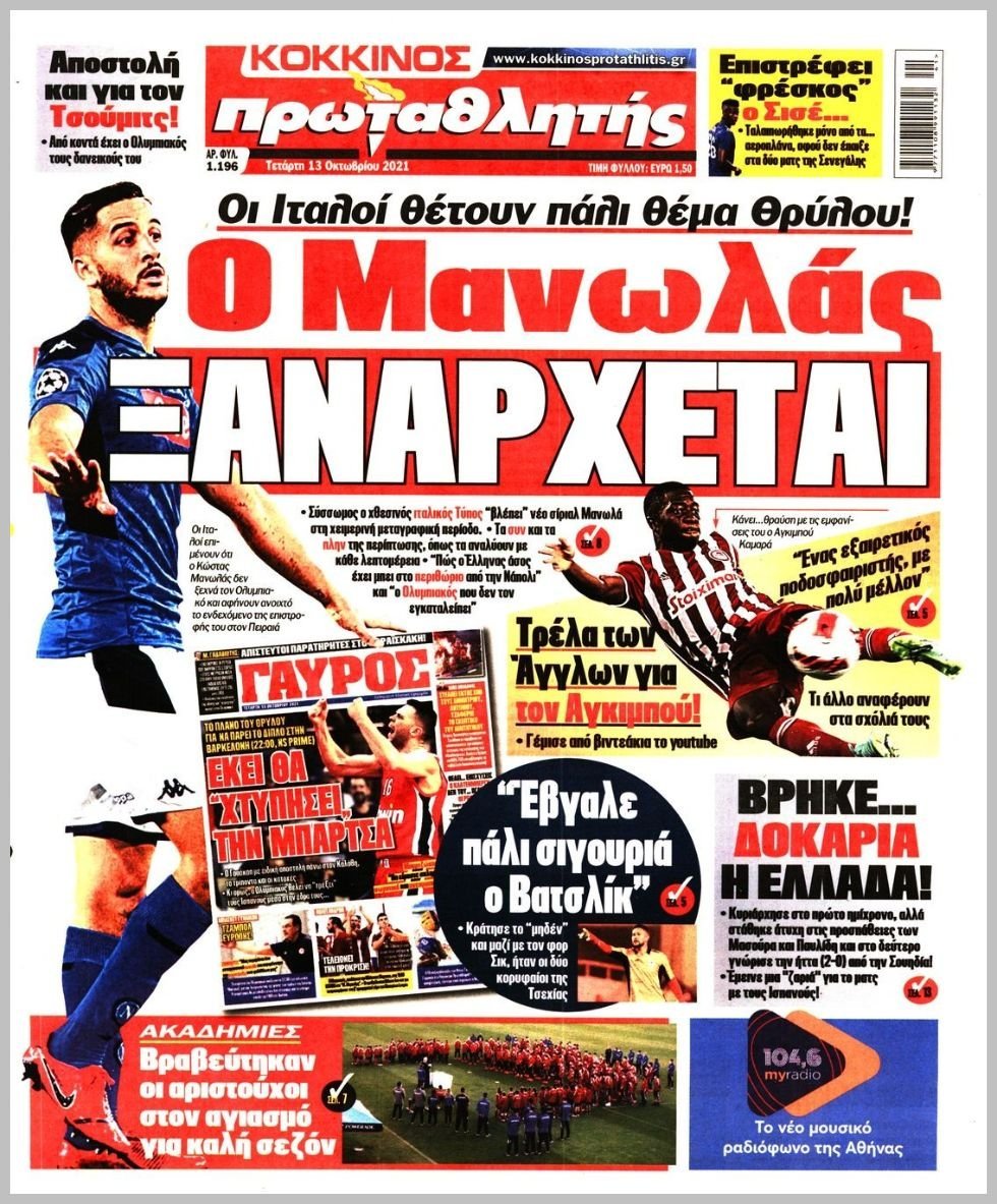 Τετάρτη 13 ΟΚΤΩΒΡΙΟΥ 2021