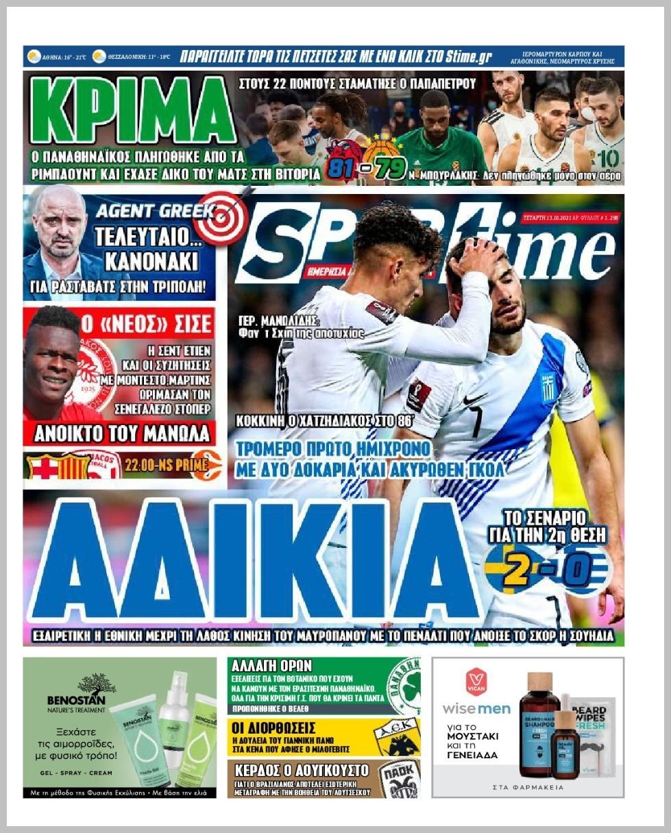 Τετάρτη 13 ΟΚΤΩΒΡΙΟΥ 2021