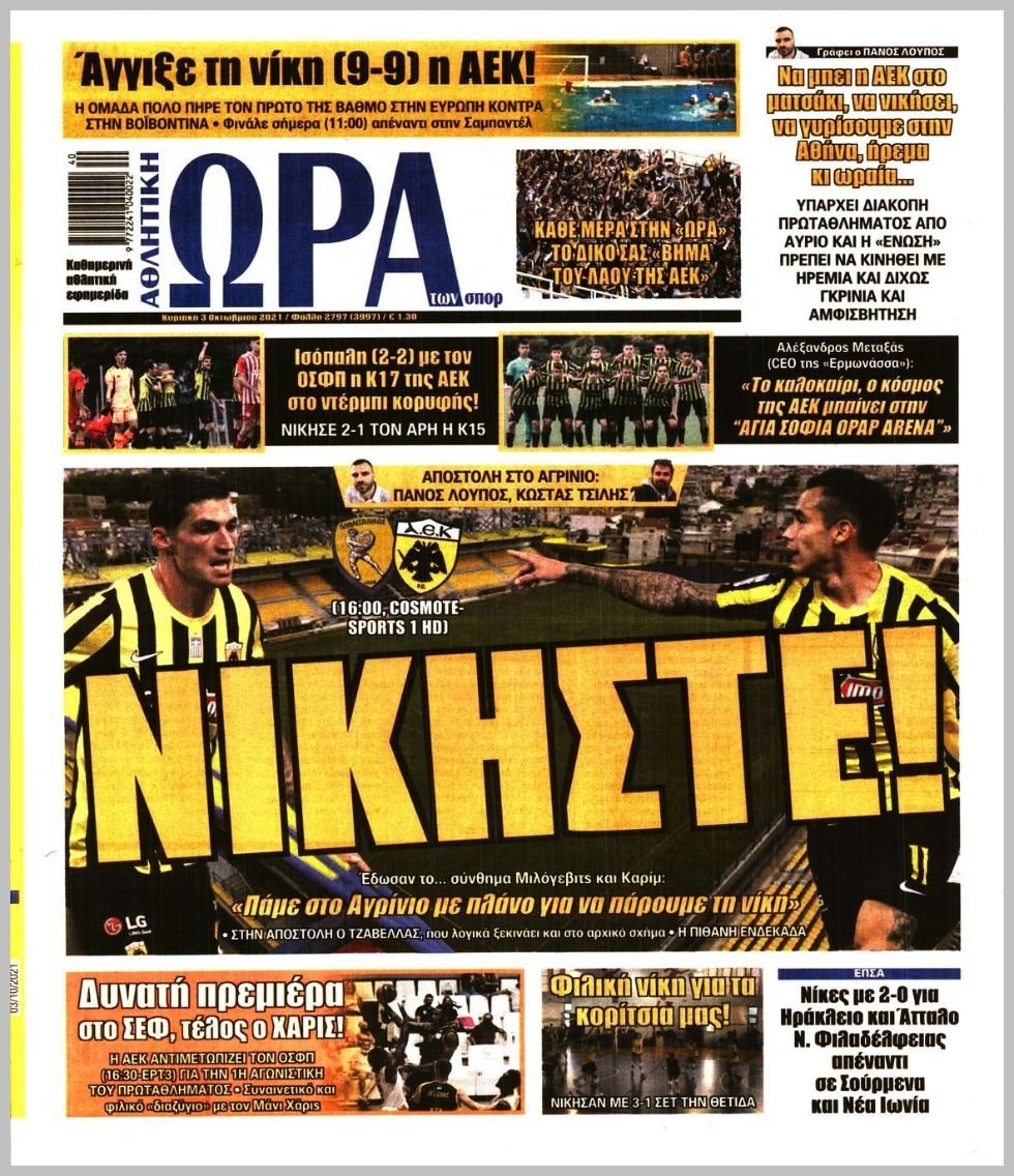 Κυριακή 03 ΟΚΤΩΒΡΙΟΥ 2021