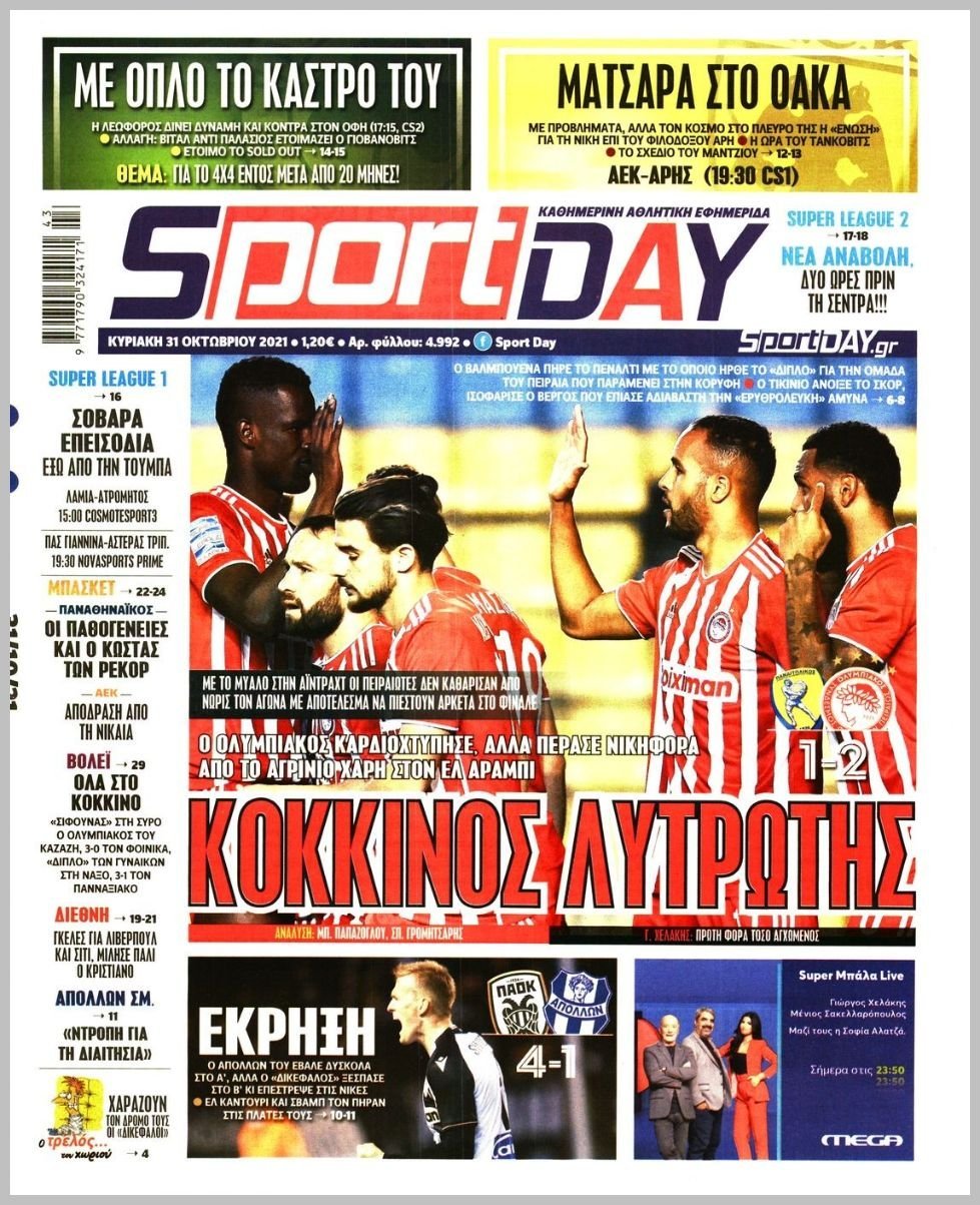 Κυριακή 31 ΟΚΤΩΒΡΙΟΥ 2021